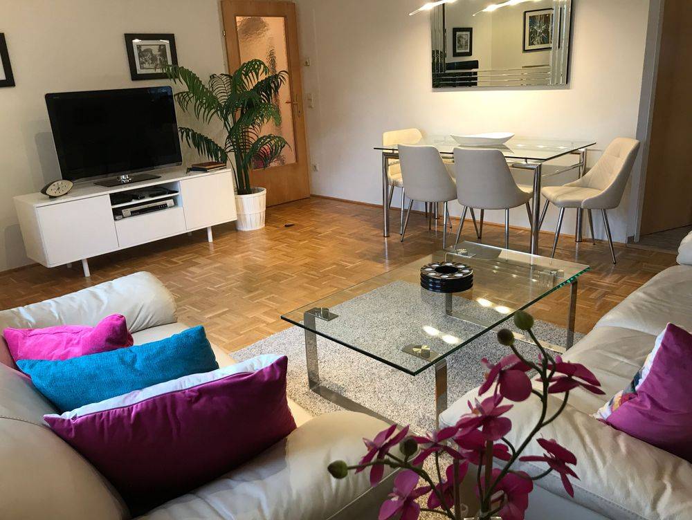 The apartment is perfect for couples, 2/3 persons. The apartment has parquet floors throughout, a private full length balcony with stunning uninterrupted views of the Steinklüft, Fürberg and Schafberg Mountains. The lounge and both bedrooms also have the advantage of the wonderful mountain views. Guests have access to free Wi-Fi throughout the apartment. There is no elevator but the stairs are easily managed by all our guests, both young and old. Free parking is available nearby (100m), with the use our parking permit.